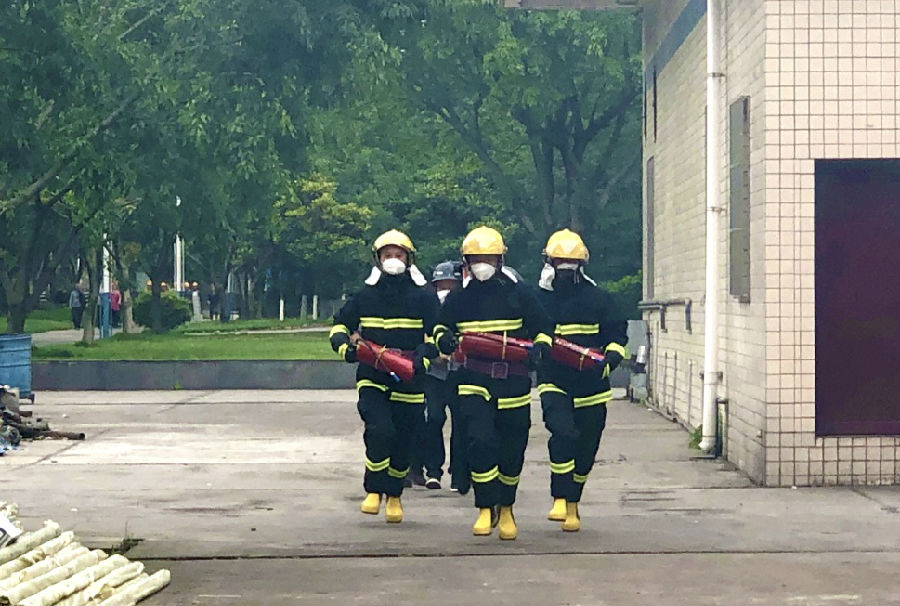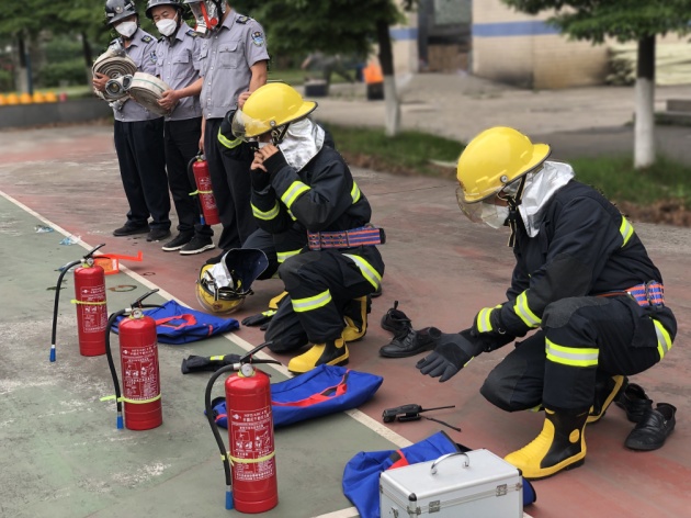消防站队员首先进行了“初起火灾的扑救”、“火灾事故的应急响应”、“受困人员的搜救”、“应急疏散引导”、“CPR急救”、“现场警戒和管制”、“事故现场恢复及善后处理”7个情景模拟推演,并采用分解方式使观摩人员清晰了解各个环节情况。随后,观摩人员分组进行体验实训,亲自上阵使用灭火器、拼接消火栓、穿戴灭火战斗服、佩戴防毒面具。实训中,专业人员讲解了要领,及时帮助纠正了不规范的程序和操作方法。