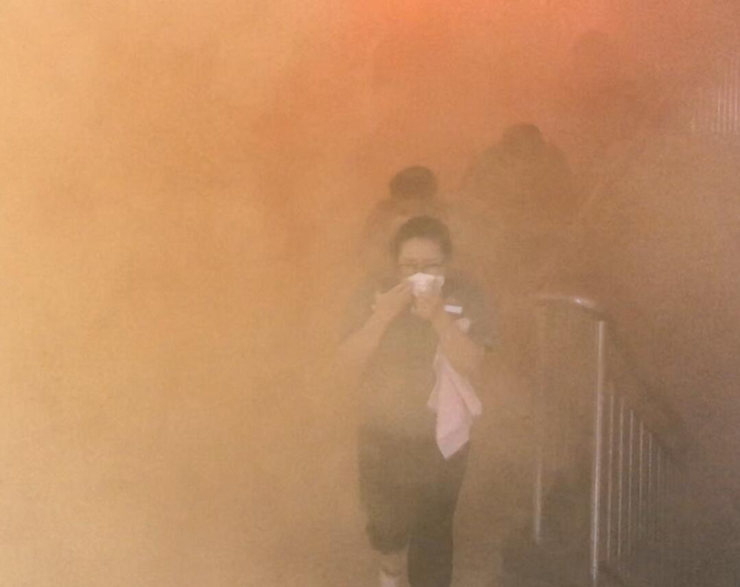 浓烟迅速蔓延到各楼道和办公室,员工们由于经常接受日常安全培训且训练有素,迅速利用周边毛巾、口罩、衣物捂住口鼻,弯腰快步下楼撤离。紧急撤离过程中有一员工摔倒,后续疏散人员见状立即扶起后共同撤离。到达安全地带后,现场指挥小组第一时间组织清点各部门人员确认是否安全。很快,火情得到控制,烟雾进行了通风疏散,收尾工作也按照计划进行。