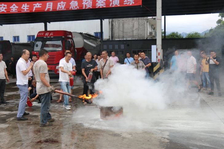 演练结束后,全体人员积极参与了正确使用灭火器灭火操作。