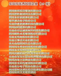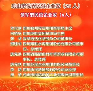 4月25日下午,乐山市召开民营经济发展大会。市委、市政府隆重表彰了19家“乐山市优秀民营企业“和28名“乐山市优秀民营企业家“,其中8人获”领军型民营企业家“荣誉称号。