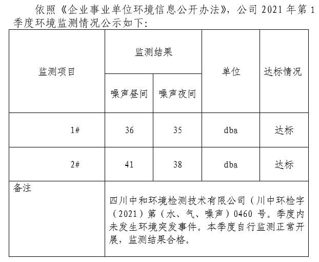 【公示】四川峨胜集团石膏矿业有限公司 2021年主要污染物排放监测公示表(1季度)