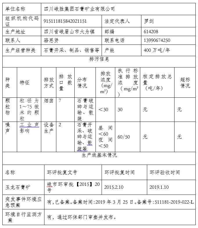 四川峨胜集团石膏矿业有限公司环境信息公开