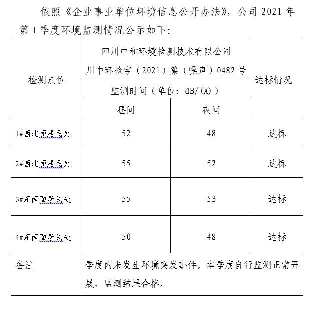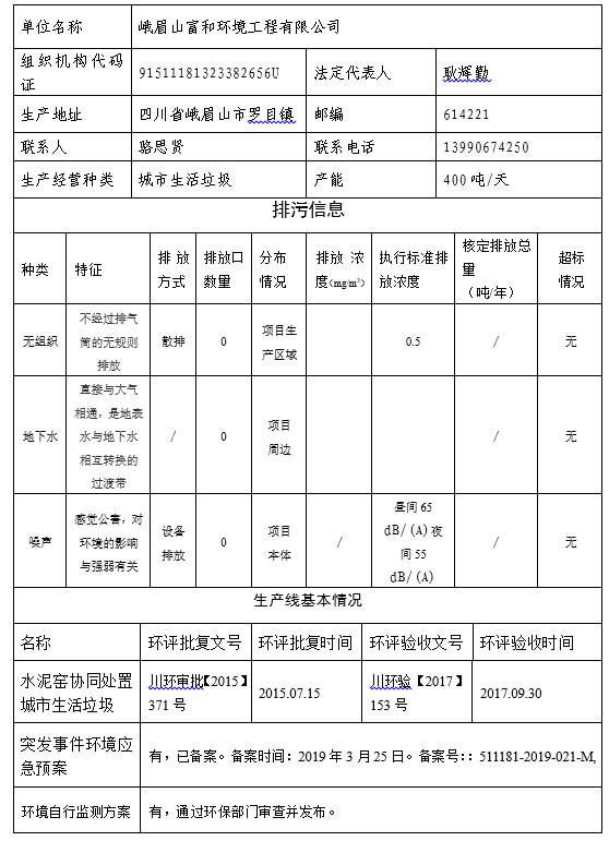 【公示】峨眉山富和环境工程有限公司 2021年环境信息公示(1季度)