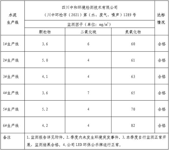 【公告】四川峨胜水泥集团股份有限公司 2021年主要污染物排放监测公示表(3季度)