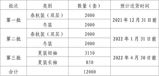 说明:1.如第一批服装无缩水、起球、褪色等质量问题方可按计划提供第二、三批衣服。2.所供工作服需与提供款式一致,款式详见附件。