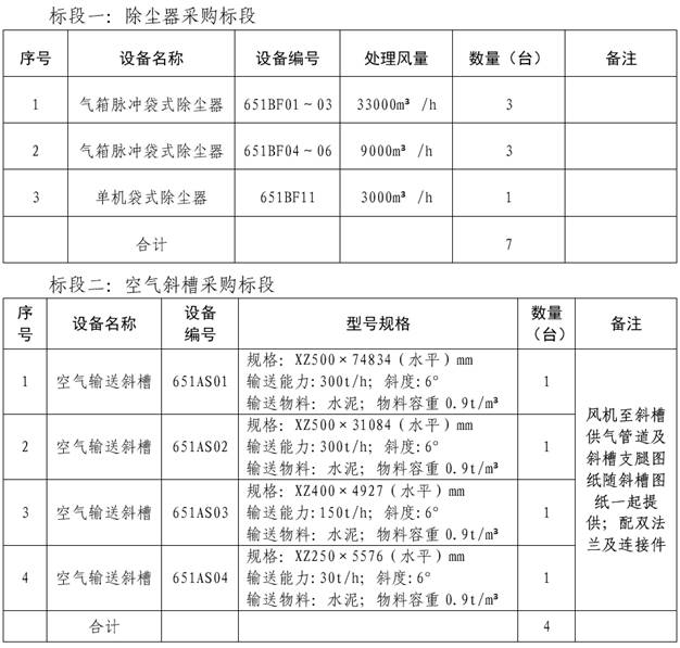 本项目分除尘器和空气斜槽采购2个标段,可选择性投标。