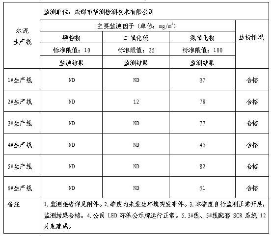 依照《国家重点监控企业自行监测及信息公开办法》和相关法规要求,公司2023年第4度环境监测情况公示如下: