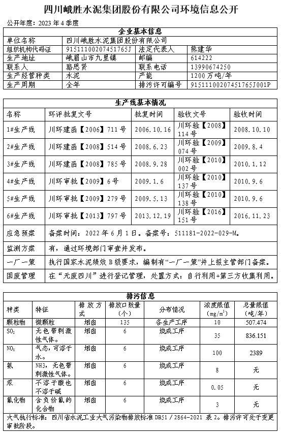 附件:峨胜水泥2023第四季度报告地表水雨水废水无组织噪声有组织【附件下载】