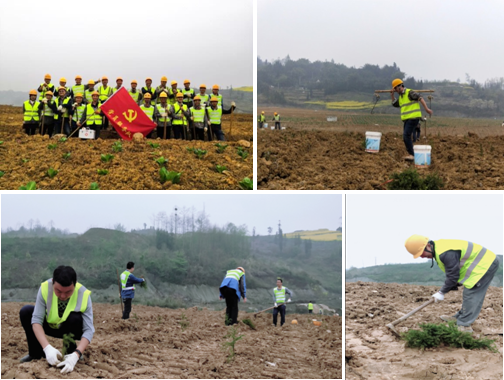 3月30日,原料分厂党支部的党员们主动放弃周末休息到玉龙石膏矿开展植树活动。活动中大家有条不紊、干劲十足,有的搬运树苗,有的挥锄挖坑,有的栽种填土,有的挑水浇灌,现场呈现一片热火朝天的繁忙景象。经过一上午奋战,30余名党员共栽种柳杉、千丈等树苗1250棵。期间,有几个同志在旁边山坡上采摘野菜,午餐前为大家献上了满满一箩筐。在造福生态的同时,大家也享受到了大自然的馈赠。
