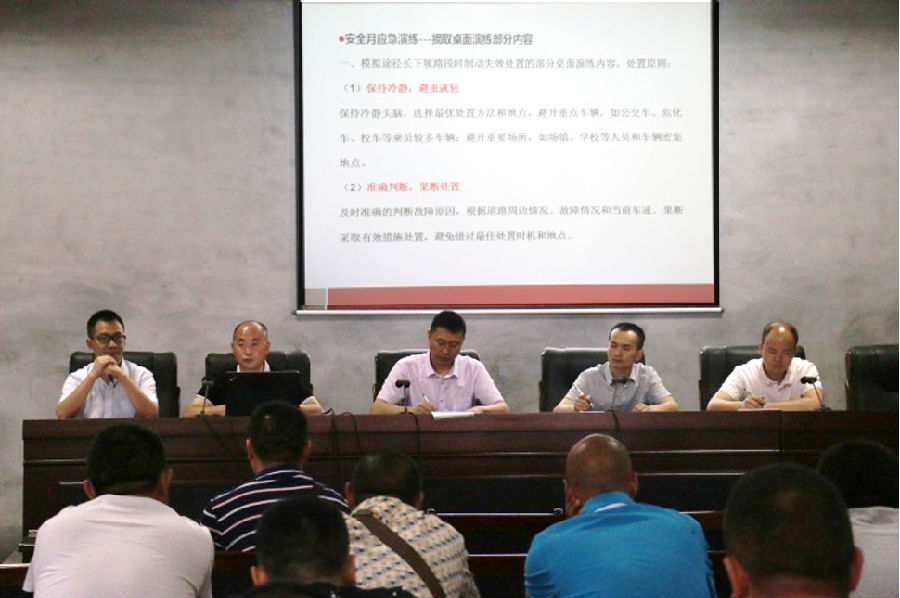 演练以“6•13”浙江温岭槽罐车事故为导向,开展桌面应急演练,模拟公司水泥罐车在刹车失控和着火的情况下,根据预案如何采取快速应急措施处置,在保障自己生命安全的前提下,最大限度地避免更大的人员伤亡以及财产损失。