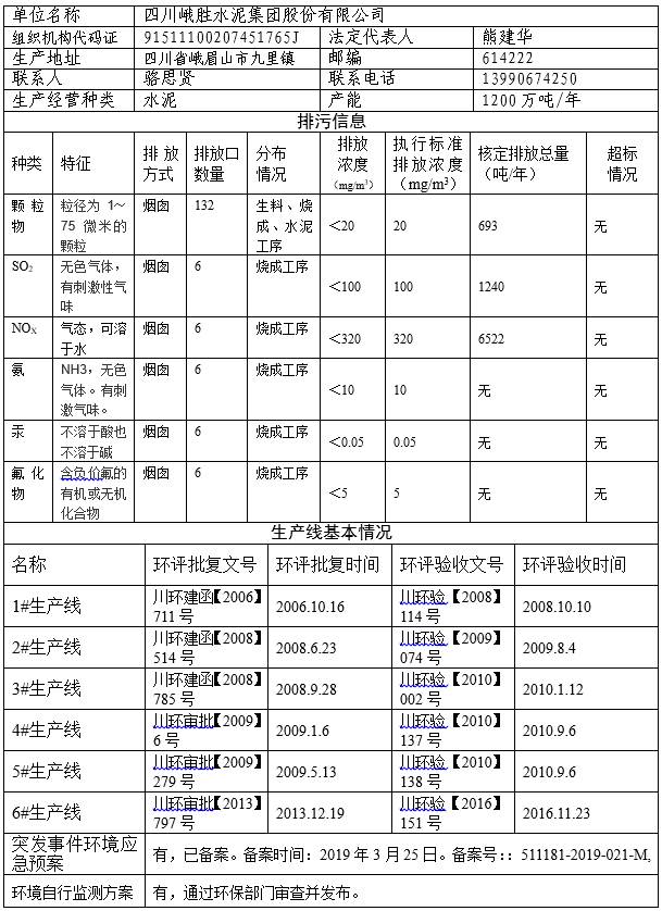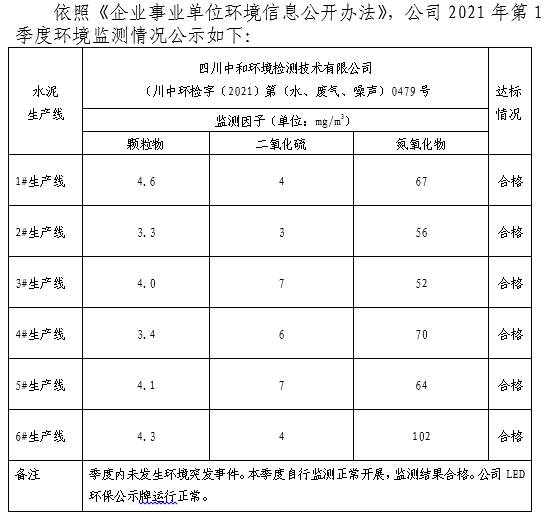 【公示】四川峨胜水泥集团股份有限公司 2021年主要污染物排放监测公示表(1季度)